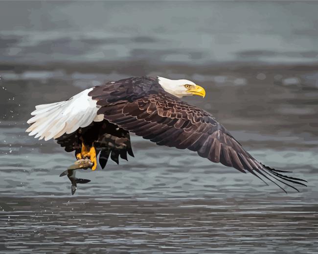 Eagles and Fish River Scene Paint By Numbers