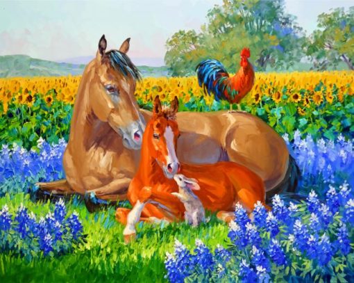 Benefits of Horses and Rooster Animal Paint By Numbers Artwork