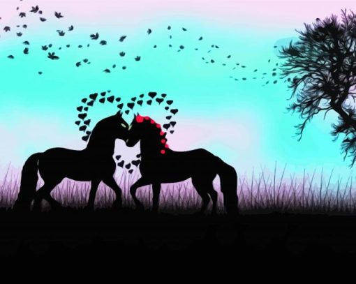 Horses in Romantic Silhouette Paint By Numbers