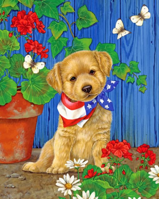 Puppy Garden Scene Paint By Numbers