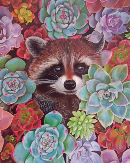 Raccoons and Succulents Paint By Numbers