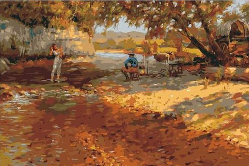 River Family Camping Scene Paint By Numbers