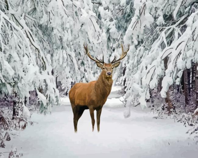 True Deer Snowy Landscape Paint By Numbers